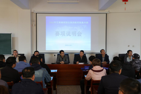 4月12日下午,2019年甘肃省职业院校教师技能大赛高职组“工程测量”赛项赛前说明会在甘肃建筑职业技术学院康乐校区举行。甘肃省测绘产品质量监督检验站站长曹建君及相关科室负责人、甘肃交通职业技术学院、兰州资源环境职业技术学院、甘肃工业职业技术学院、甘肃林业职业技术学院等相关负责人及参赛选手参加了说明会,甘肃建院测绘系副主任刘宗波主持说明会。