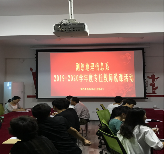 测绘地理信息系于2019年8月28日与9月12日两日在2#教学楼1楼全系室对全系23名专任教师进行了本学期的说课考核,由刘宗波主任、李海英副主任、徐敏副书记、刘攀老师、周美川老师、韦莉老师、常乐老师、颜为莉老师、吕玉婷老师、魏鑫老师、刘红兵老师组成考核小组进行说课打分。