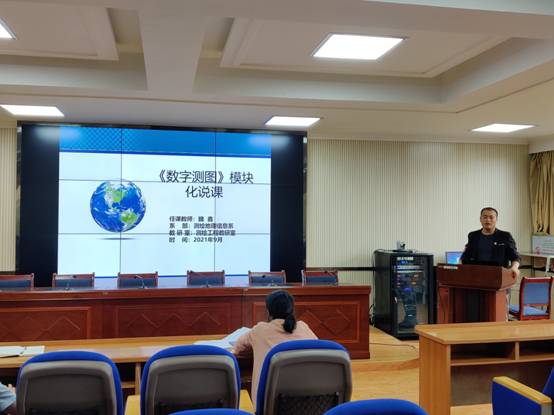 测绘地理信息系于2021年9月18日上午在2#教学楼3楼多功能厅对我系20余名专任教师进行了本学期的说课考核。大家从课程定位、课程思政以及课程改革发展等几个方面展开说课,说课效果良好。