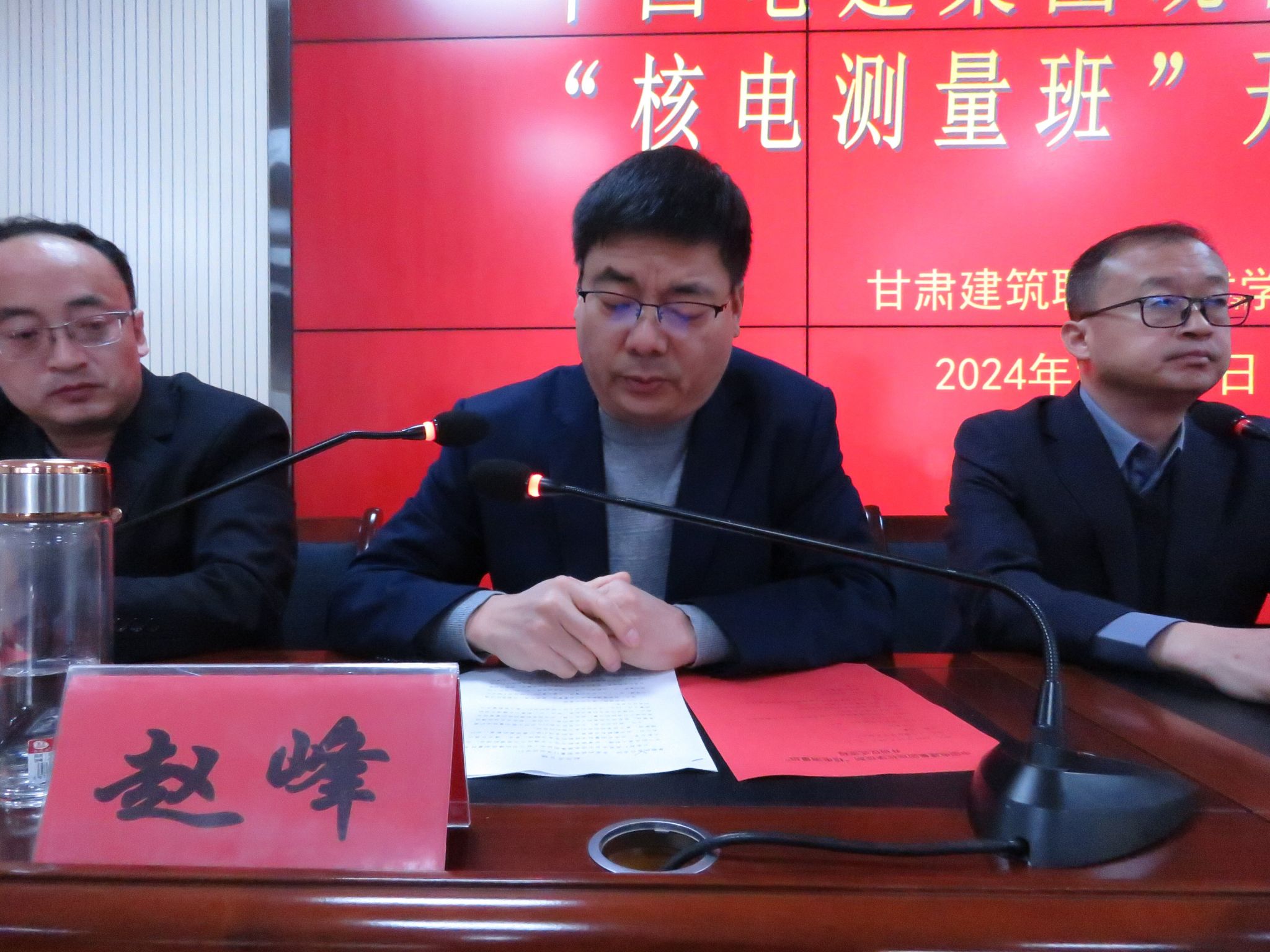 于辉超主管做了发言。他介绍了中国电建集团核电公司的基本情况以及核电测量班开设的目的和意义。赵峰主任也从专业角度谈了工程测量对核电建设的重要性,对核电班的同学们提出了几点要求,期待同学们在核电工程这片广阔的天地里乘风破浪。