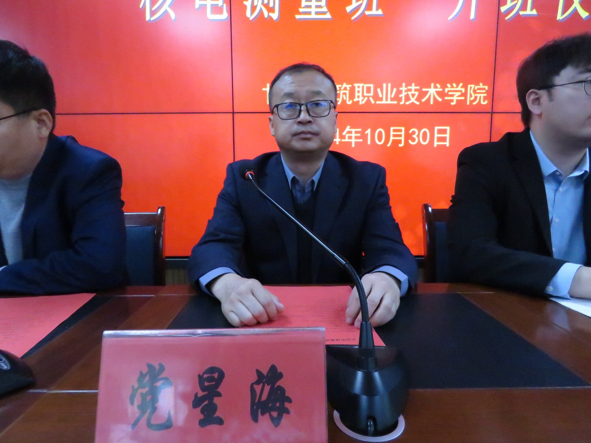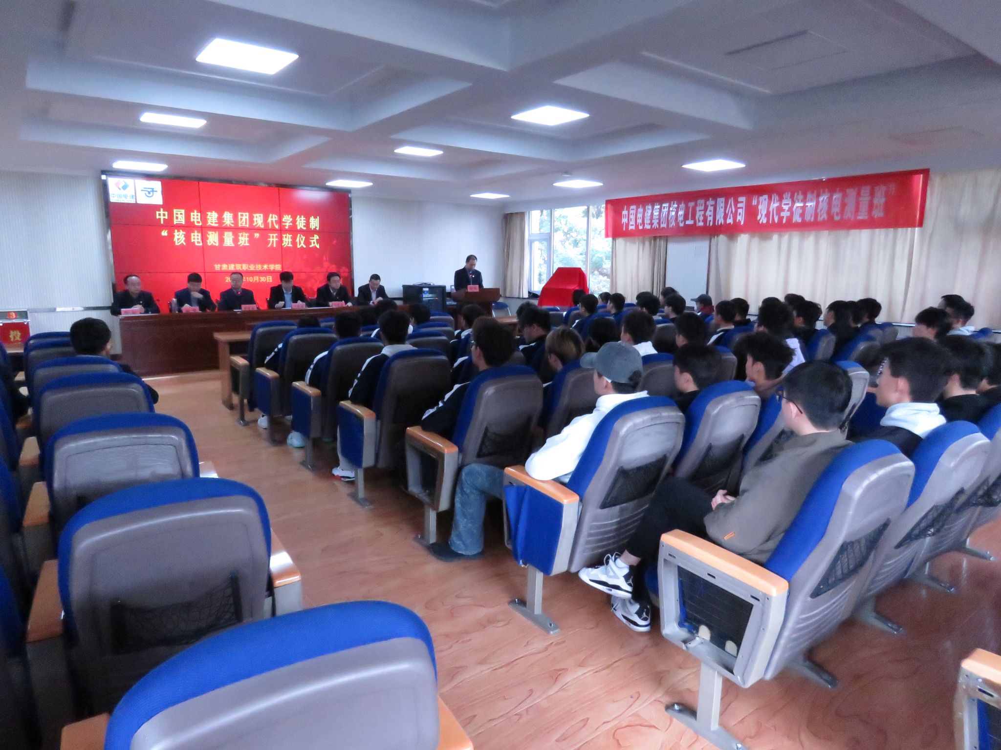 10月30日,在三楼学术报告厅举行了甘肃建筑职业技术学院与中国电建集团核电公司现代学徒制“核电测量班”开班仪式。学校党委副书记、校长党星海,中国电建集团核电公司人力资源部主管于辉超,中国电建集团核电公司建筑测量技术中心负责人赵峰,学校招就处处长王东晓,测绘地理信息学院党总支书记徐敏,测绘地理信息学院院长刘攀,教务处副处长张宝鹏以及测绘地理信息学院教师代表,“核电测量班”全体同学参会。会议由刘攀主持。