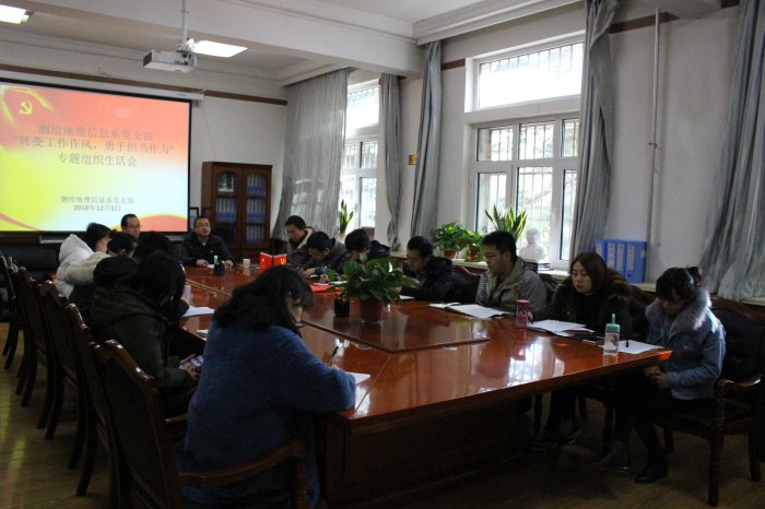 为进一步深入开展“作风建设年”活动,彻底转变广大党员同志的作风问题,根据学院“作风建设年”活动安排和学院党委下发的甘建职院党发函〔2018〕4号关于认真组织召开专题组织生活会的通知,我支部经过前期认真的准备工作,经学院党委办公室同意,我支部于12月6日在第二会议室召开了以“转变工作作风,勇于担当作为”为主题的专题组织生活会。学院教务处处长李君宏同志以及我支部14名党员同志参加了会议,会议由党支部副书记、副主任刘宗波同志主持。