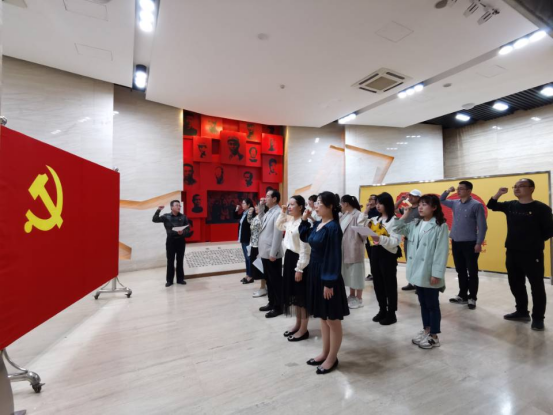 参观结束后,全体教师党员面向党旗举起右手庄严宣誓。
