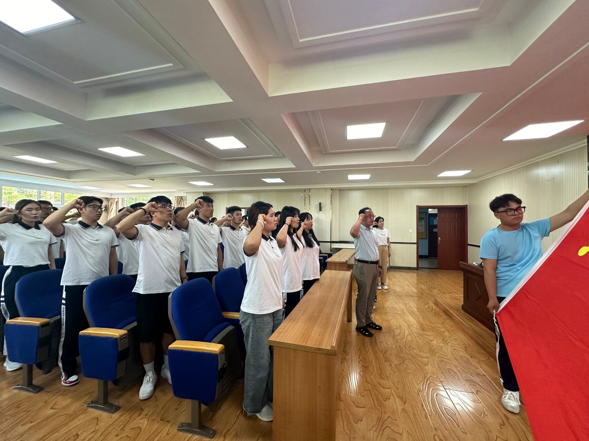 宣读会议决议后,测绘系党总支开展2024年预备党员入党宣誓仪式,进一步提升新接收预备党员的党员意识和党性修养。