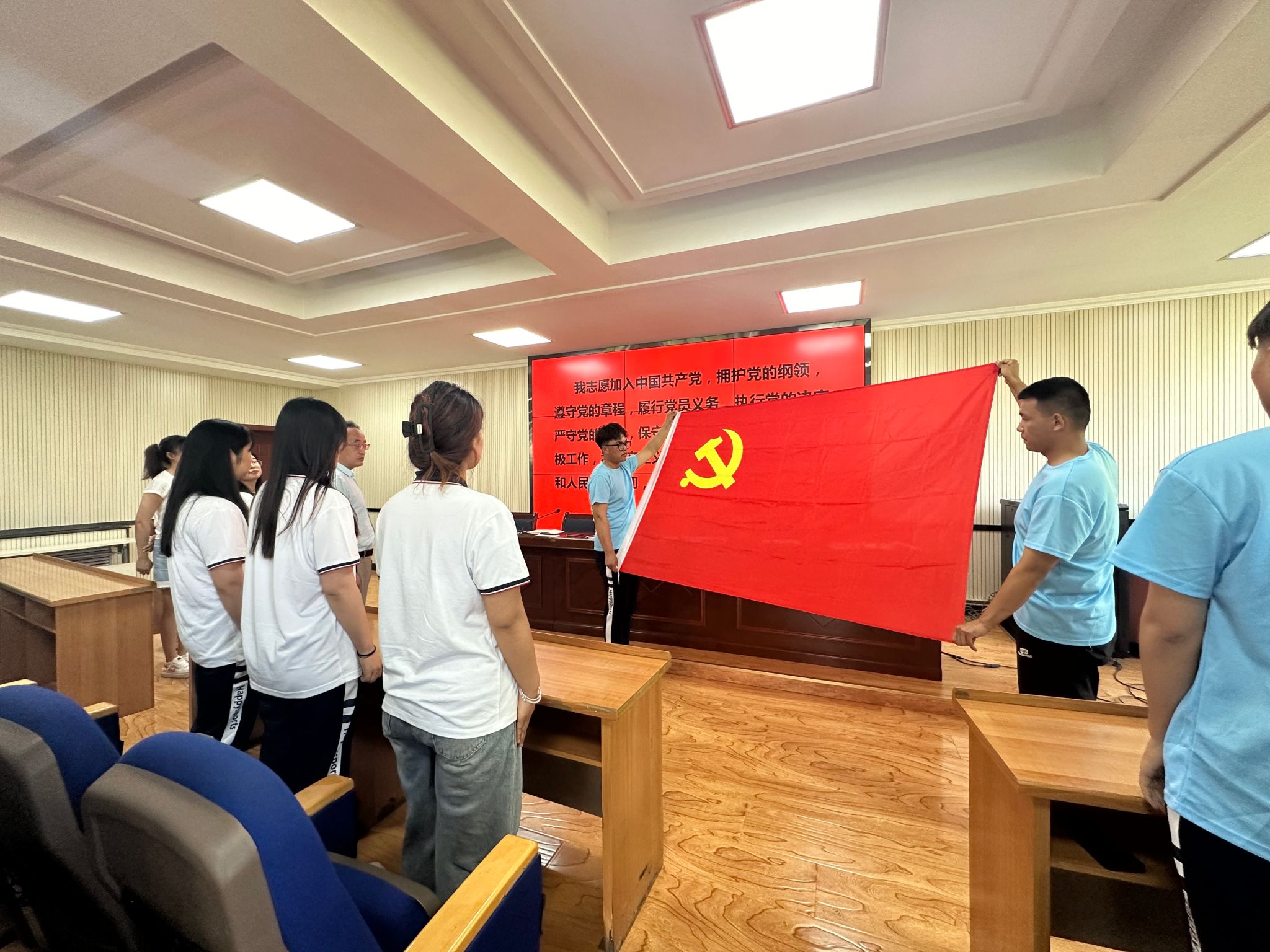在徐敏同志的带领下,全体参会人员面对鲜红的党旗庄严宣誓,表达了他们对党的深厚感情,坚定不移地听党话、跟党走。