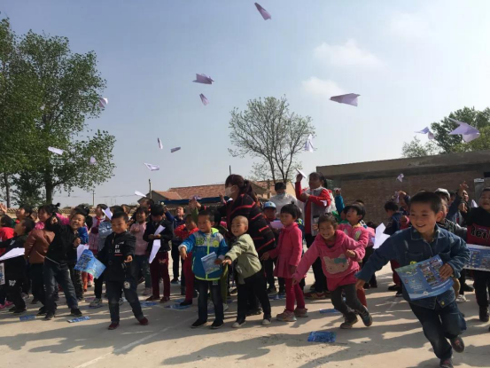 接着在指导老师的带领下全校师生参与梦想启航纸飞机折叠现场互动,孩子们仔细的听,认真的学,一张张天真的小脸蛋满是喜悦,好奇的目光中满是对知识的渴求。随着指导老师说道:“许下愿望,哈一口气,一、二、三放飞梦想”,欢呼雀跃的同学们把飞机飞向天空,引领大家翱翔梦想的实现。