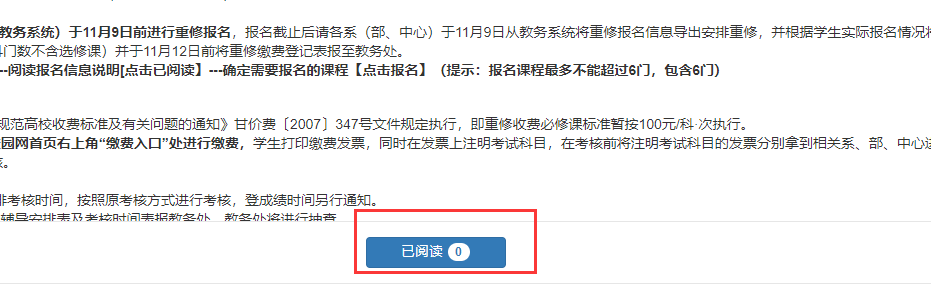 3.本学期重修报名课程最多不能超过10门(含10门)。