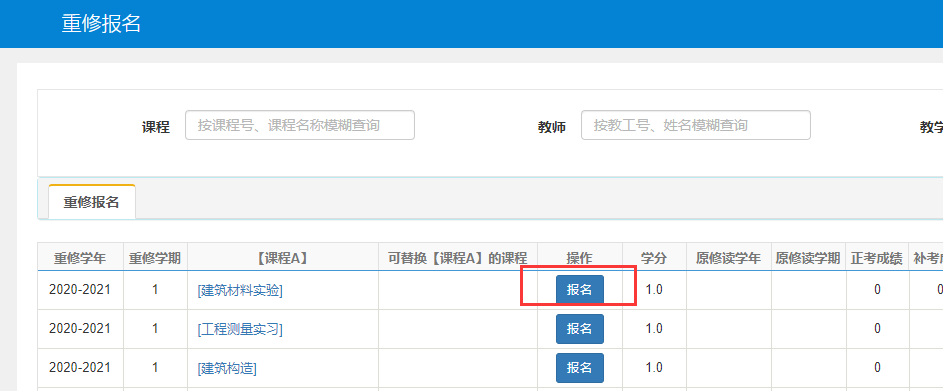 进行重修报名